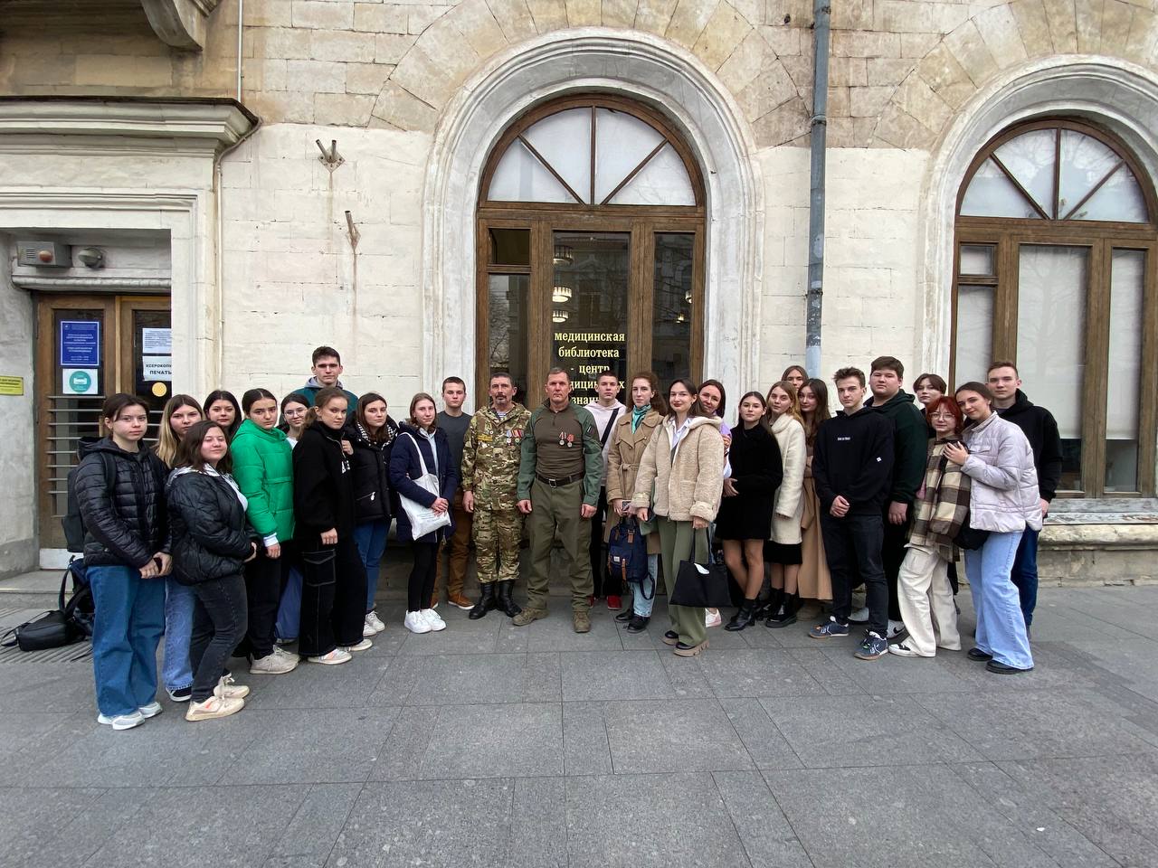 Гости встречи рассказали ребятам о своем опыте поисковой работы, о реалиях нынешней ситуации в зоне боестолкновений, о работе медиков "за ленточкой". Встреча проходила в нашей любимой медицинской библиотеке, в уютном читальном зале, и тем страшнее звучали слова о том, что всего в пяти часах езды от Севастополя идет война... В конце встречи Валентин Александрович сказал очень важные для всех нас слова:"Патриотизм - это любовь к родине, которую мы можем проявить не только в бою с оружием в руках, но и честно, хорошо выполняя свою работу, всерьез овладевая знаниями, которые помогут сделать нашу Родину еще лучше".