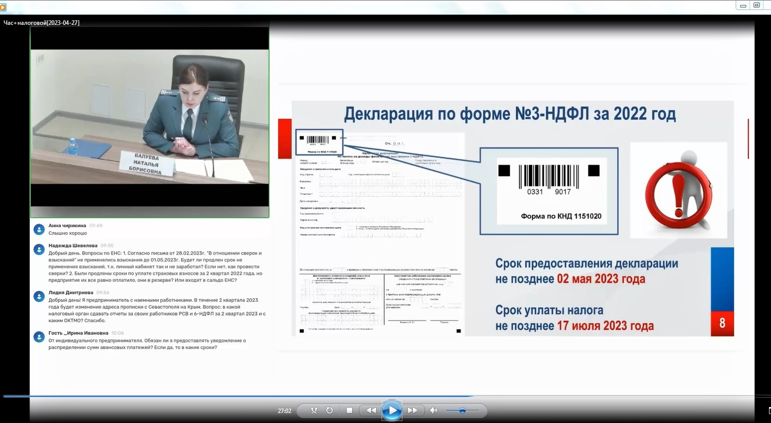 Декларационная кампания, в ходе которой граждане города Севастополя должны отчитаться о доходах, полученных в 2022 году, подходит к завершению. О том, кто обязан предоставить декларацию в обязательном порядке и какие доходы освобождены от налогообложения подробно рассмотрели на очередном вебинаре под рубрикой «Час налоговой».