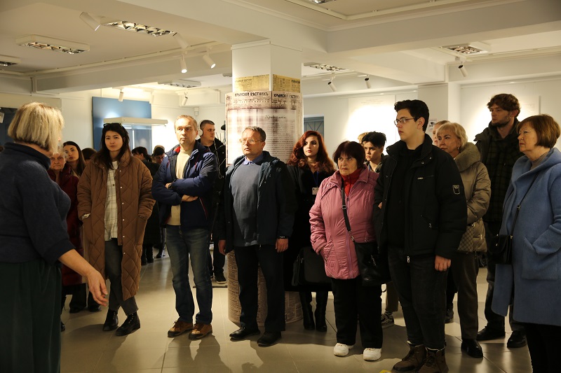 Куратор выставки, хранитель музея-заповедника Е. В. Колесник, рассказала первым посетителям о личности А. Я. Гидалевича и провела приуроченную к открытию ознакомительную экскурсию по новой экспозиции: «Арон Яковлевич Гидалевич – купец 1-й гильдии, общественный деятель и благотворитель, сыгравший важную роль в жизни дореволюционного Севастополя. В 1908 году он подготовил и отпечатал в своей типографии "Прогресс" первый в Севастополе адрес-календарь, ставший путеводителем по городу. Всю жизнь он был увлечен историей, входил в состав Таврической ученой архивной комиссии, а в 1912–1913 годах ему довелось принять участие в археологической экспедиции Херсонесского музея на Мангупе, возглавив раскопки в Табана-Дере».