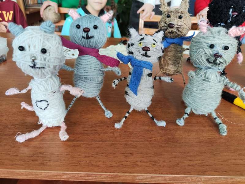 Пряжа используется мастерицами не только для вязания. В их умелых руках она превращается в очаровательные поделки – сувениры, игрушки. Замечательные разноцветные игрушки-котики получились у наших ребят. Рукоделие из ниток полезно и для детей. Оно дает им возможность научиться усидчивости, терпению, проработать мелкую моторику, а так как мастер-классы проходят в стенах библиотеки, их участники становятся нашими читателями.