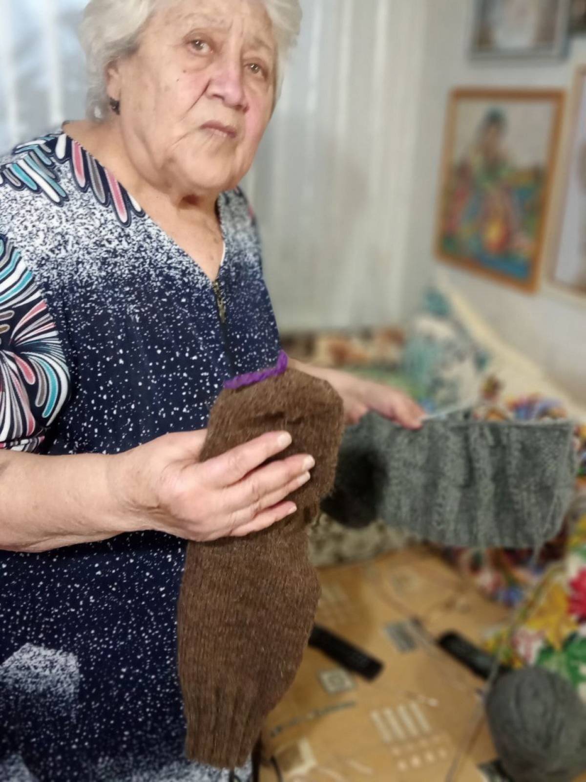 Участницы акции «Тепло для героя» вяжут для военных шерстяные носки и свитера