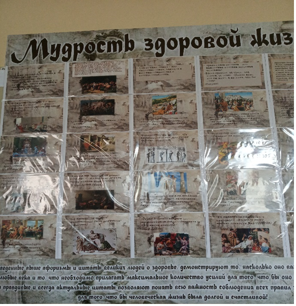 С целью воспитать интерес к здоровому образу жизни у студентов колледжа в рамках дисциплины студентами группы 32Фк под руководством Фоминой И.Л. был создан и представлен альбом «Мудрость здоровой жизни» на основе латинских афоризмов о медицине, профилактике, гигиене и лечении.