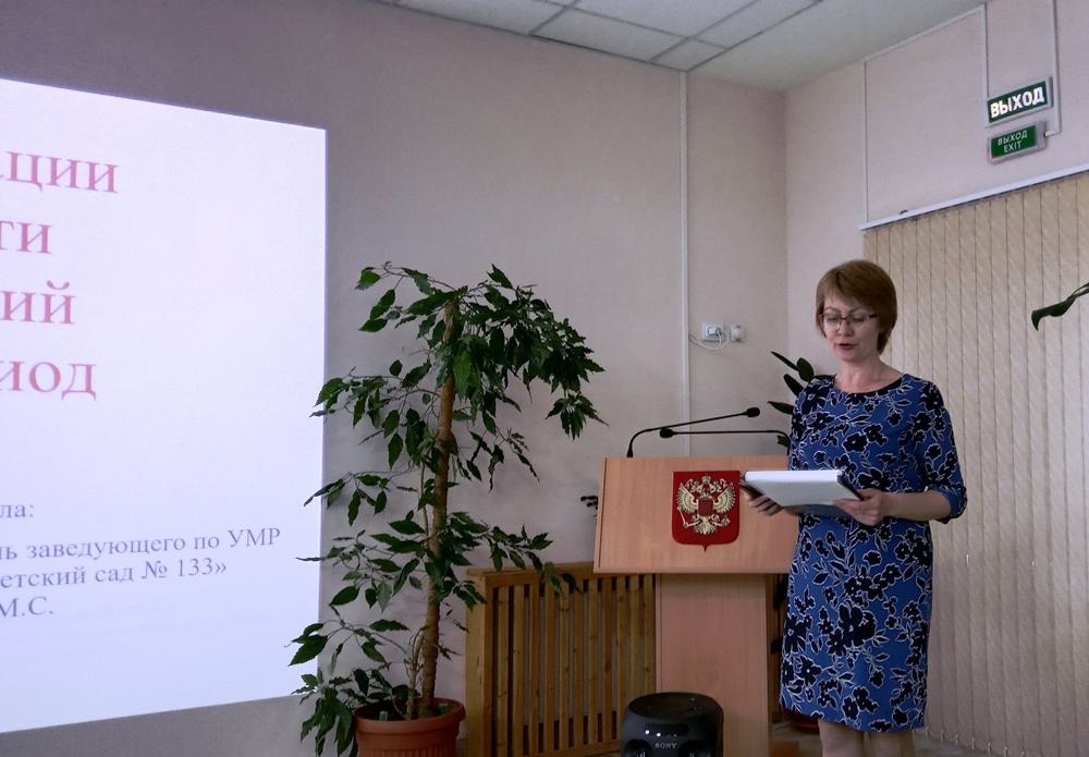 Старший методист Шишкина Е.В. познакомила участников совещания с закаливающими мероприятиями и режимом дня на летний оздоровительный период для детей дошкольного возраста. Заместитель заведующего по ВМР ГБДОУ «Детский сад № 129» Довгаль Л.Н. выступила с презентацией «Использование опытно-экспериментальной деятельности с детьми дошкольного возраста в летний оздоровительный период», подробно остановившись на оборудовании, необходимом для проведения опытов на игровых участках с водой, воздухом и песком. Морозова М.С., заместитель заведующего по УМР ГБДОУ «Детский сад № 133», выступила с докладом «Особенности организации игровой деятельности детей дошкольного возраста в летний период». В своем выступлении Марина Станиславовна презентовала «Городок мастеров», который состоит из 12 малых архитектурных форм и находится на территории ГБДОУ № 133.