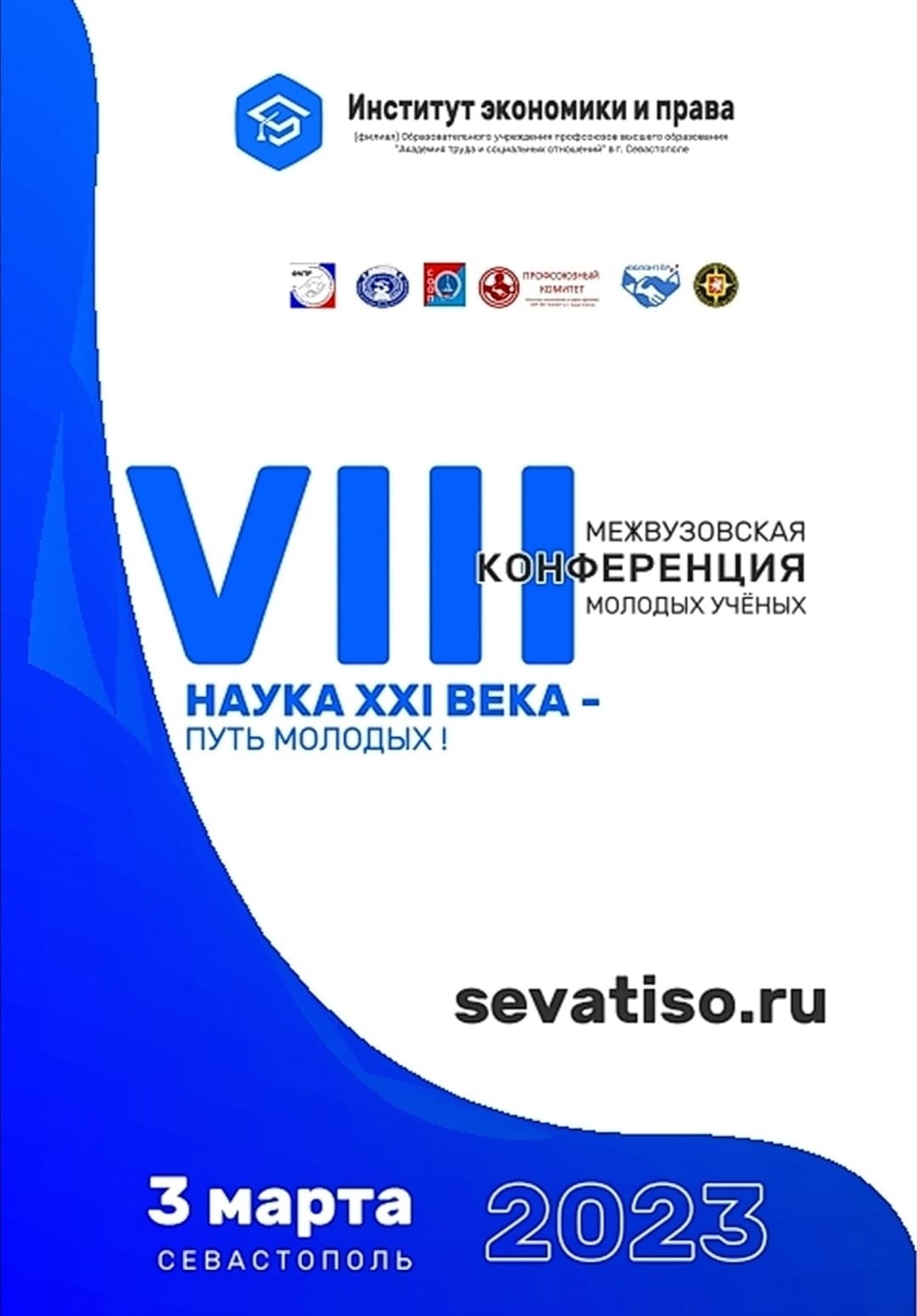 VIII межвузовская конференция молодых ученых «Наука XXI века – путь молодых !» состоялась 3 марта 2023 года в Институте экономики и права (филиал) образовательного учреждения профсоюзов высшего образования «Академия труда и социальных отношений» в г. Севастополе.