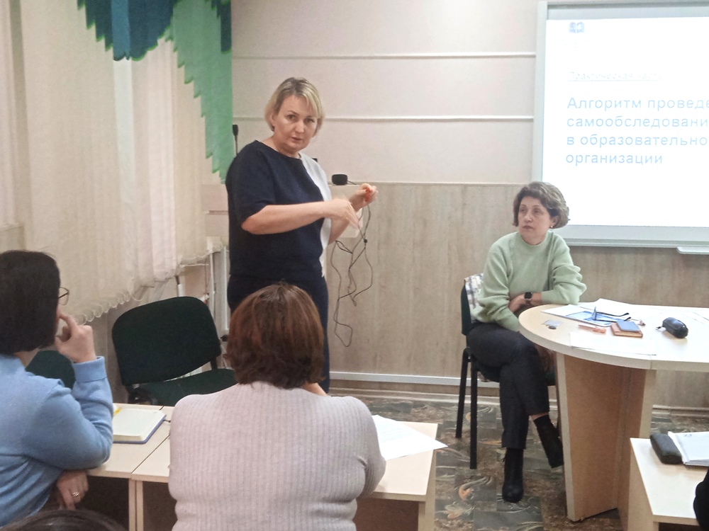 В практической части Блажко Людмила Геннадьевна, начальник отдела качества образования ГАОУ ПО ИPО, представила алгоритм проведения самообследования в образовательных организациях и провела тестирование участников с целью закрепления основных моментов самообследования.