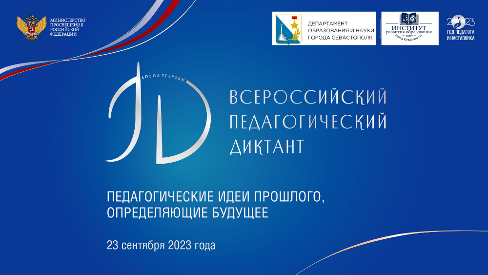 23 сентября 2023 года в городе Севастополе пройдет Всероссийская просветительская акция «Педагогический диктант» на тему «Педагогические идеи прошлого, определяющие будущее».