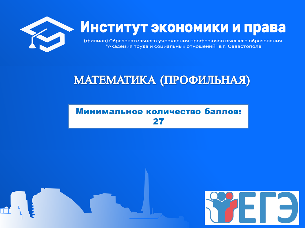 Напоминаем, что для поступления в Институт экономики и права по направлениям подготовки 38.03.01 Экономика и 38.03.02 Менеджмент необходимо сдать экзамен по профильной математике !