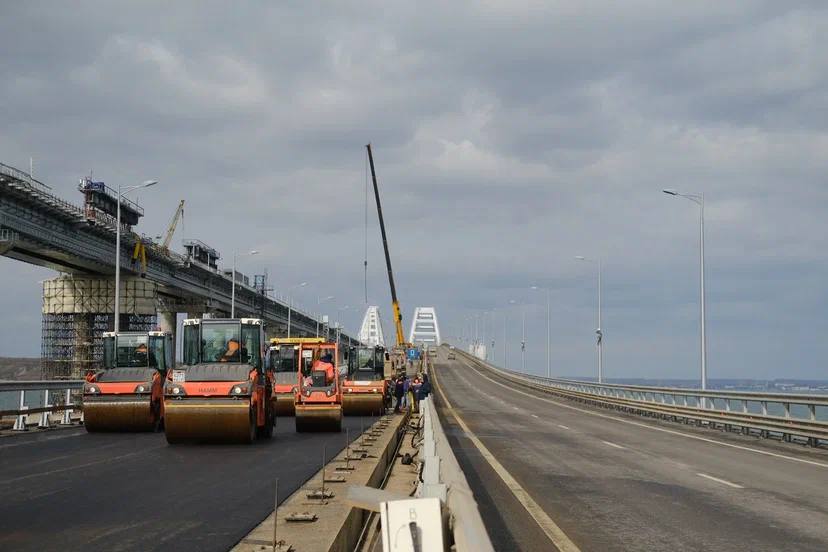 На восстановленной части Крымского моста уложен первый слой асфальта