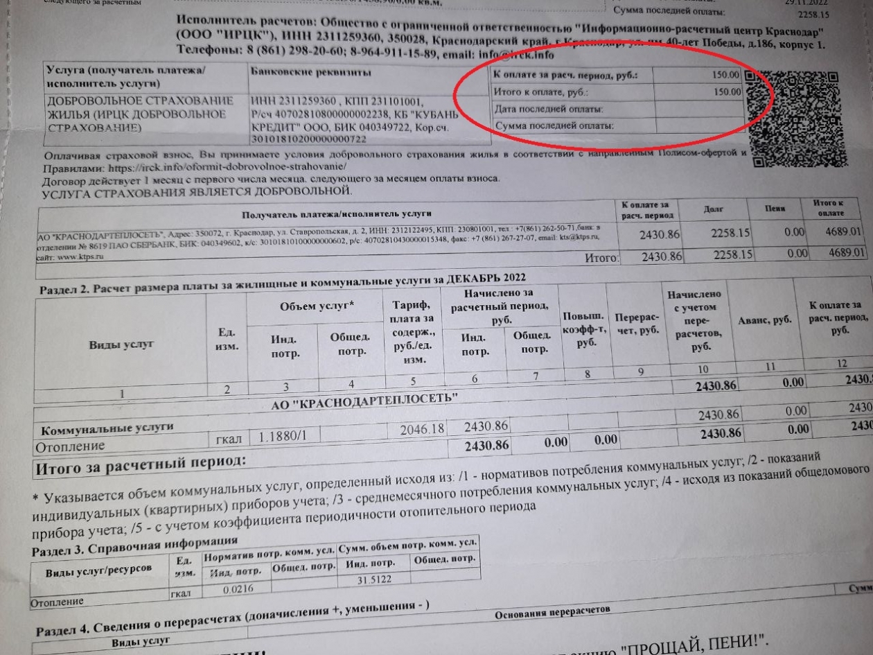 В квитанции ЖКХ для россиян стали включать услугу страхования жилья. К примеру, такую услугу могут включать в платежку за отопление. В квитанцию наряду с привычными реквизитами и QR-кодом для оплаты за отопление внесены также реквизиты и QR-код для оплаты услуги страхования.