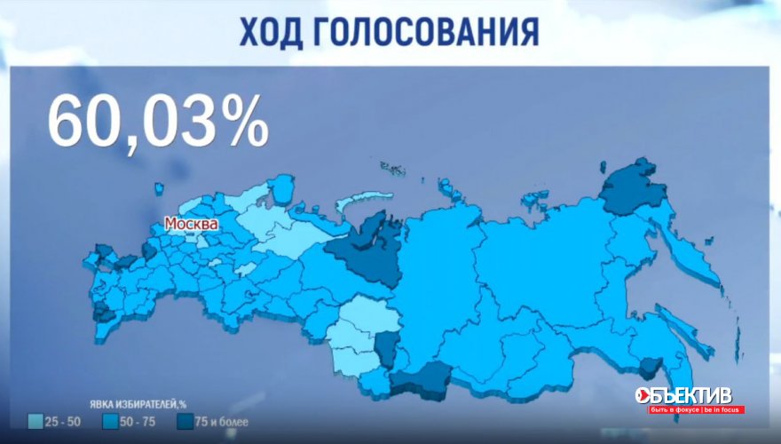 Явка избирателей на президентских выборах по России достигла 60% к началу третьего дня голосования.