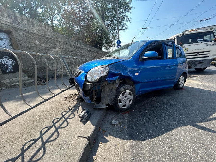 В Севастополе малолитражка эффектно протаранила кроссовер и повредила забор