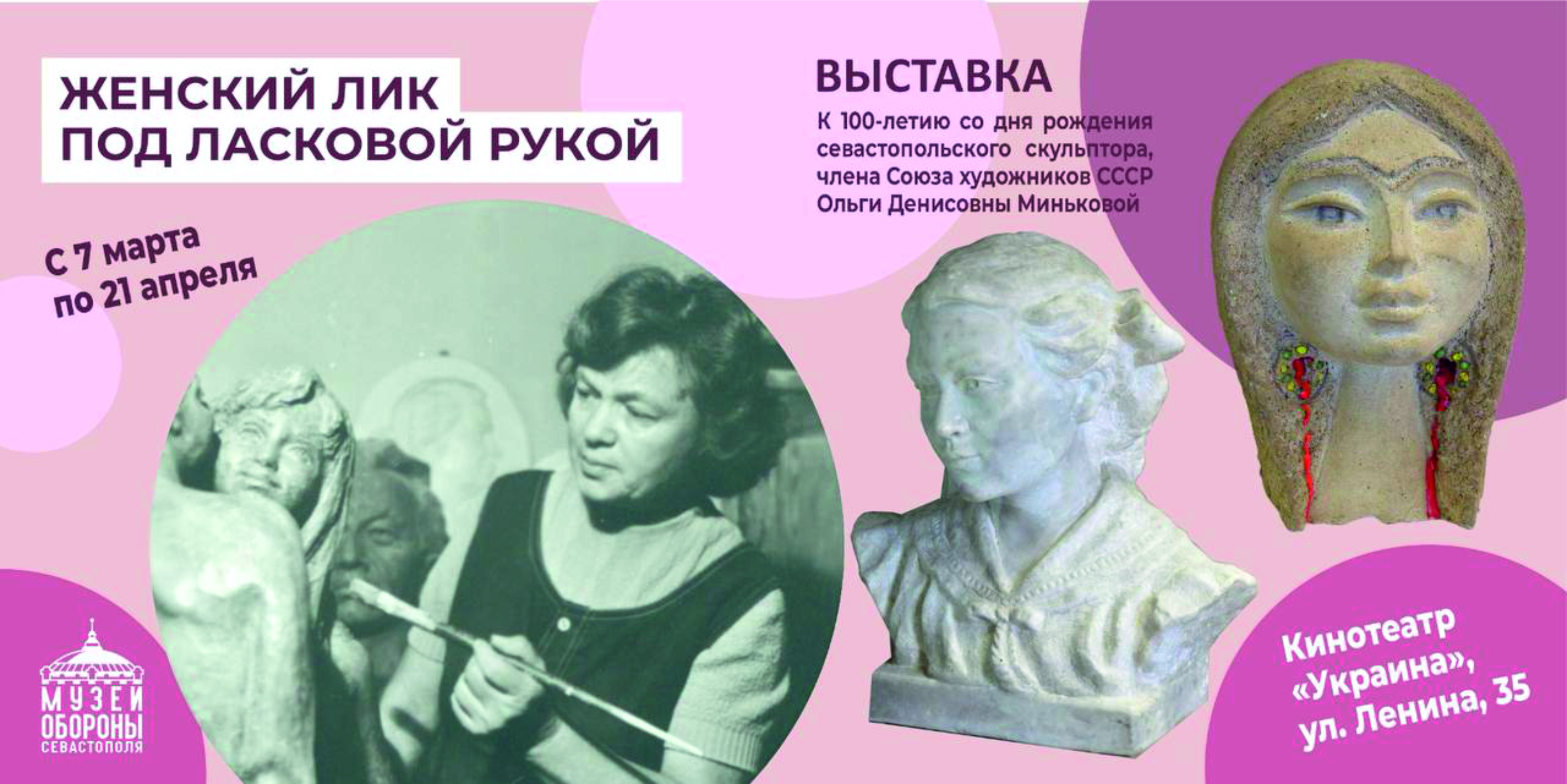 7 марта, к Международному женскому дню, в кинотеатре «Украина» откроется выставка «Женский лик под ласковой рукой», посвященная 100-летию со дня рождения севастопольского скульптора, члена Союза художников СССР Ольги Денисовны Миньковой.