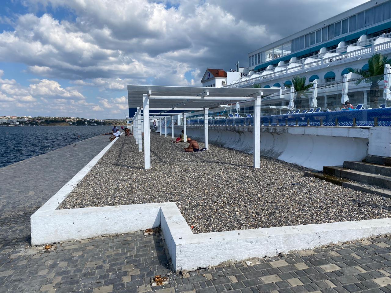 Обещания оператора пляжа о приятной лаунж-зоне, детской площадке остались на бумаге, здесь весь сезон постоянно велись какие-то земляные работы. Спортивная площадка была реализована в виде трех турников советского образца.