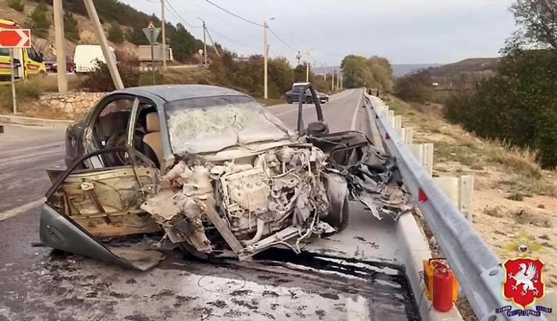 Как сообщает пресс-служба городского УМВД, по предварительной информации 47-летний водитель автомобиля Chevrolet Lanos на 47-м км автодороги «Симферополь — Бахчисарай — Севастополь» при выезде со второстепенной дороги на главную не предоставил преимущество в движении и совершил столкновение с грузовым автомобилем КамАЗ под управлением 62-летнего водителя, который двигался по главной дороге прямо.