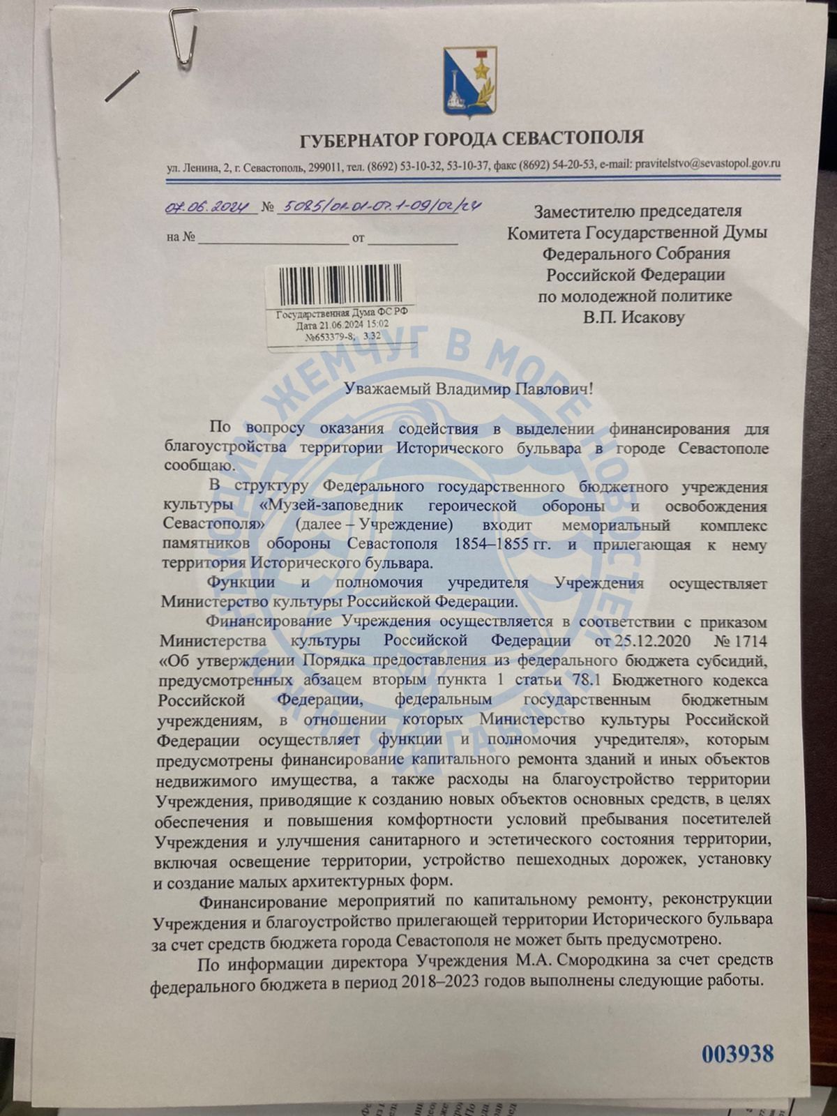 Такие сроки озвучил губернатор Севастополя Михаил Развожаев в ответ на письмо депутата Госдумы Владимира Исакова.