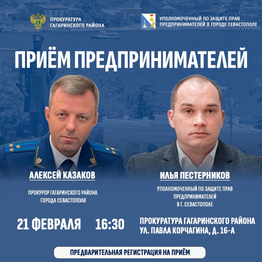Совместный прием прокурора Гагаринского района города Севастополя Алексея Казакова и Уполномоченного по защите прав предпринимателей Ильи Пестерникова