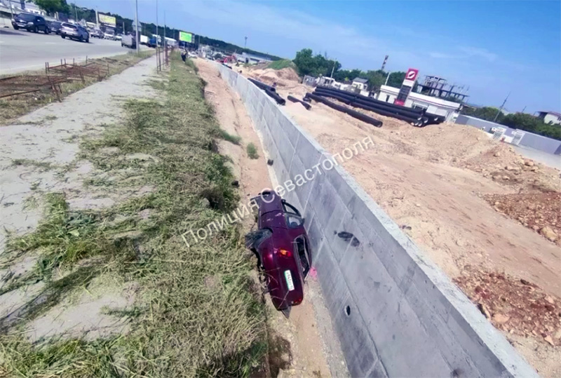 В Севастополе автомобиль слетел с дороги и упал в траншею