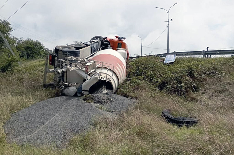 Как сообщает пресс-служба городского УМВД, по предварительным данным, 38-летний водитель бетоновоза КамАЗ на левом закруглении дороги не выбрал безопасную скорость движения, не справился с управлением и допустил опрокидывание.