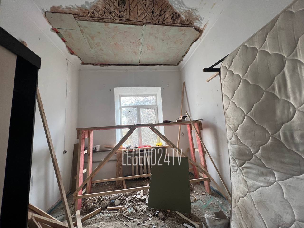 Сейчас подрядчик заключил соглашение с собственником квартиры, строители должны выполнить ремонт помещения и восстановить потолок. Также замена кровли продолжается.