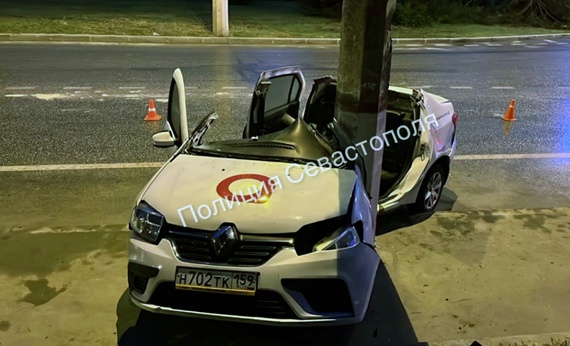 В Севастополе такси намотало на столб
