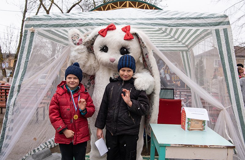 В рамках праздника проведен конкурс рождественских колядок среди детей, которые пели, читали стихи. Конкурс был призовой: за первое место полагался приз в 10 тысяч рублей, за второе – 5 тысяч, за третье – 3 тысячи рублей. Первое место заняли Аня и Дмитрий Яценко, которые тут же, на сцене, приняли решение передать свой приз для покупки подарков детям Донбасса, пострадавшим в результате военных действий.