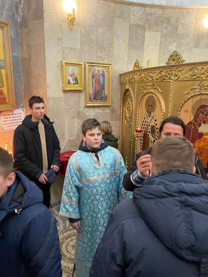 После соборной молитвы крестоходцы собрались в трапезной храма на чаепитие.