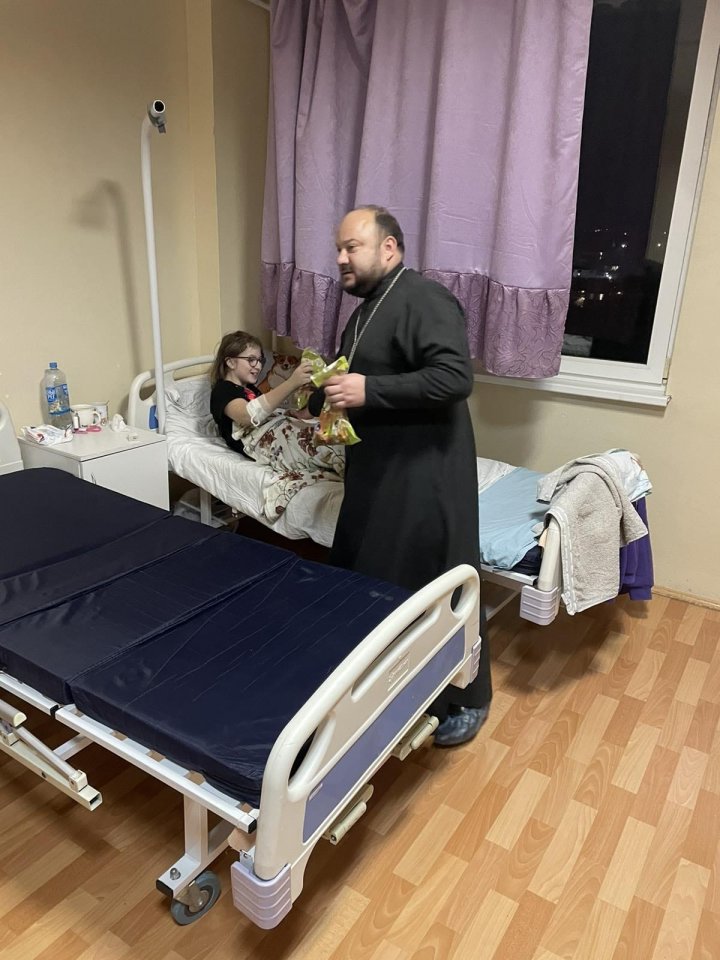 Накануне двунадесятого праздника Рождества Христова настоятель храма святителя Спиридона Тримифунтского иерей Игорь Крылов посетил 76 детей, находящихся на излечении в Детском больничном комплексе 5 км. Отец Игорь прошел по палатам, одаривая детей сладкими подарками, говорил слова ободрения и поздравлял всех со светлым праздником.