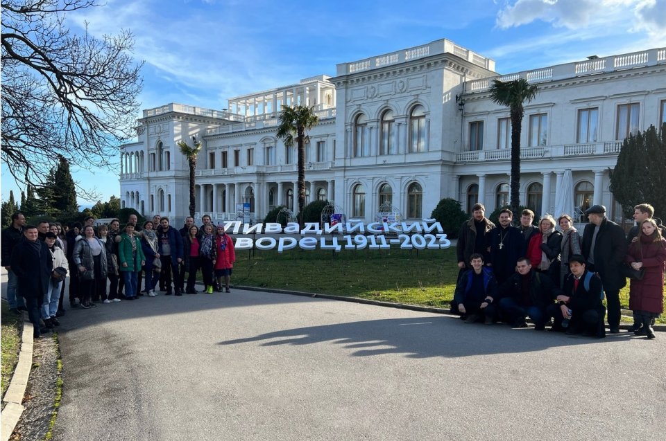 В Ливадийском дворце-музее мы встретилась с православной молодежью из Симферополя. Встреча была организована Председателем межъепархиальной коллегии по координации работы с молодёжью Крымской митрополии, руководителем молодёжного отдела Симферопольской и Крымской епархии и Православного молодёжного просветительского центра "Зёрна" иереем Евгением Полютовым, заместителем руководителя иереем Никитой Прудниковым, а также помощником благочинного по работе с молодёжью Севастопольского благочиния иереем Александром Чвачем.
