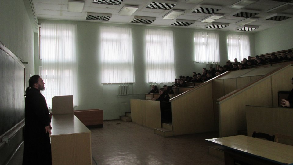 Для курсантов ЧВВМУ им. П.С. Нахимова протоиерей Игорь Тышкевич провел беседу на тему «Великий пост». Священник рассказал, что примером для подражания для нас является Господь наш Иисус Христос, который перед Своим выходом на служение человечеству провел 40 дней в пустыне в молитве и посте. Главным для христианина являются в посту молитва и любовь к ближним. И хотя для курсантов нет возможности держать пост в пище, но воздержание души от страстей и грехов – долг каждого христианина. После беседы священник ответил на вопросы курсантов.