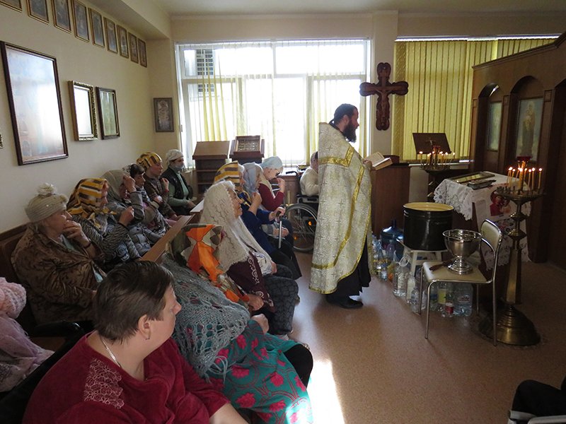 Многие жители дома-интерната пришли в этот день в домовой храм, чтобы помолиться Господу о своих нуждах, о спасении души, и взять освященной крещенской воды. По окончании богослужения к ним обратился отец Стефан, который поздравил с праздником и рассказал, как нужно обращаться с крещенской водой, чтобы она была во исцелении души и тела.