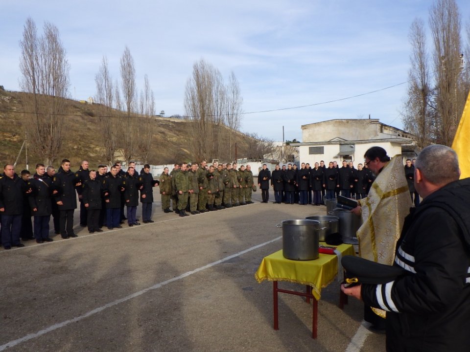19 января в соединении кораблей Черноморского флота протоиерей Александр Бондаренко отслужил чин Великого освящения воды. За богослужением молились командование соединения, офицеры и личный состав кораблей. Затем священник Александр освятил воды Севастопольской бухты, а так же окропил Богоявленской водой корабли и наземные помещения войсковой части.