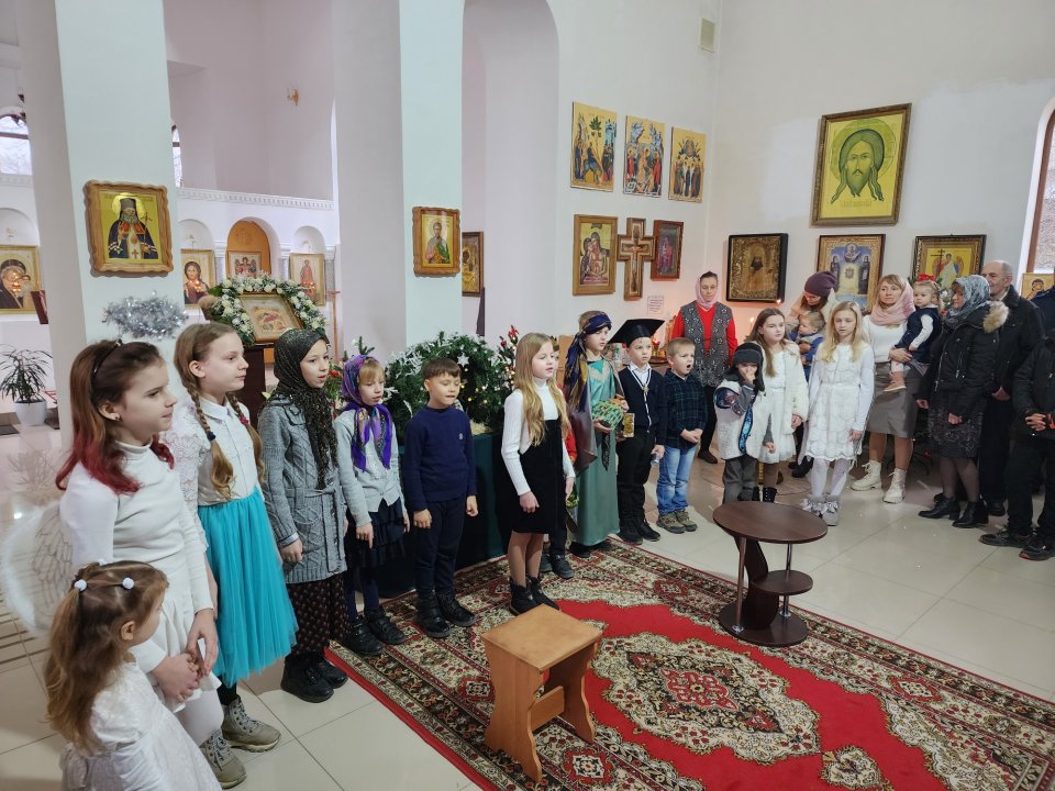 Воспитанники воскресной школы храма вмч. Феодора Тирона порадовали прихожан рождественским выступлением