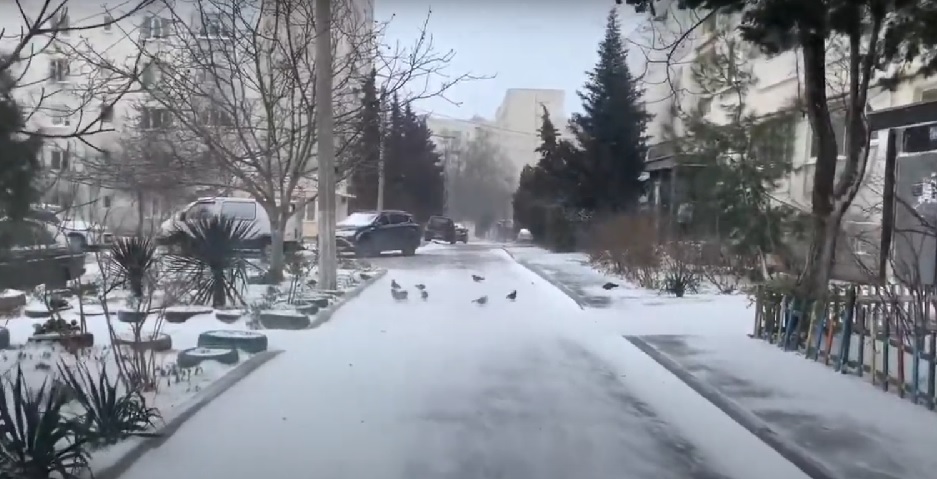 В Керчи пасмурно, снег с дождем. Ветер западный 2-4 м/с. Температура воздуха ночью 0°С и днем 0…-1°С.