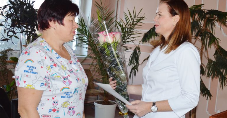 20 января Валентине Петровне Обыденной исполнилось 60 лет. Это послужило поводом для того, чтобы главный врач Пятой городской больницы Наталья Борисовна Шайнер начала утреннее совещание с поздравления: