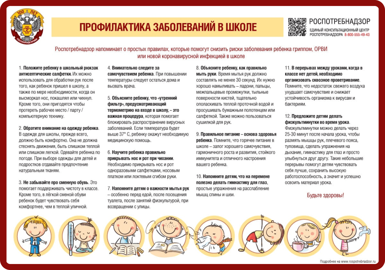 Помимо вакцинации, важно соблюдать меры профилактики в школе и на работе: