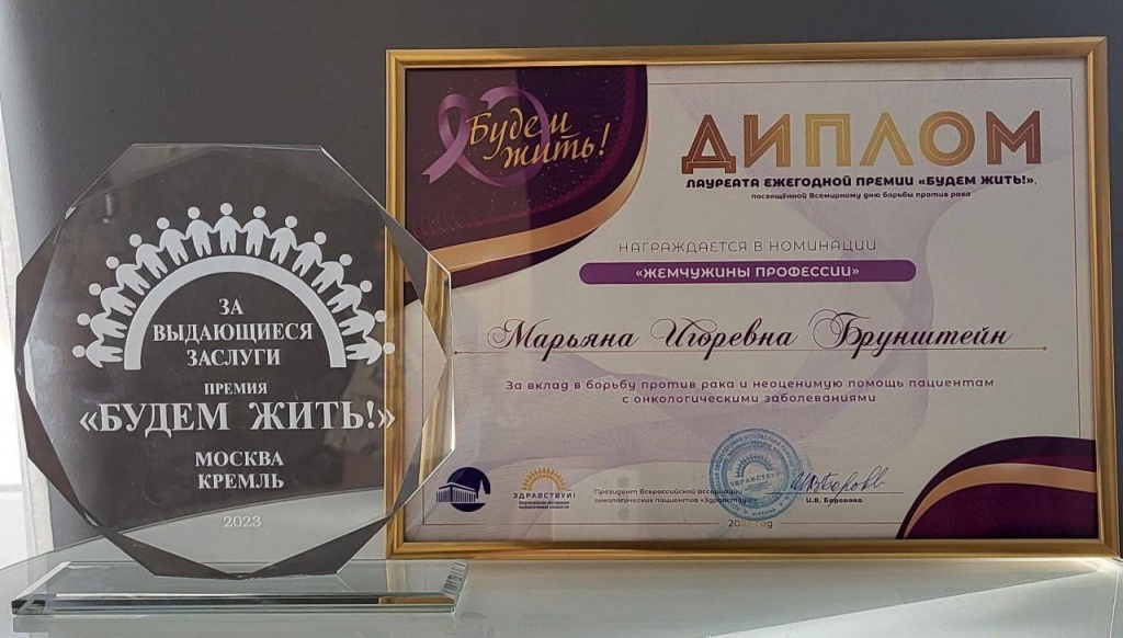 Церемония награждения лауреатов премии состоялась накануне на сцене Кремлевского дворца. В число лауреатов, отмеченных в номинации «Жемчужины профессии», вошла врач-онколог Севастопольского городского онкологического диспансера Марьяна Брунштейн.