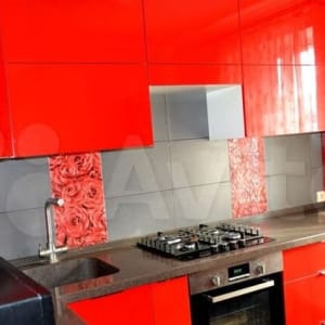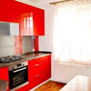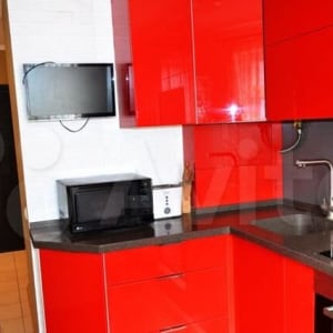2-кухня-столовая = 8,8 м2 квадратная, встроенная мебель с дорогой каменной столешницей на всю кухню. Фасады кухни новые!