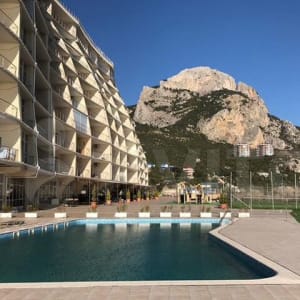 На территории комплекса находятся открытый и закрытый бассейны, шезлонги, детская