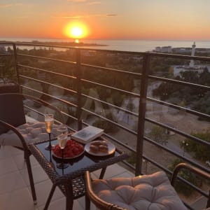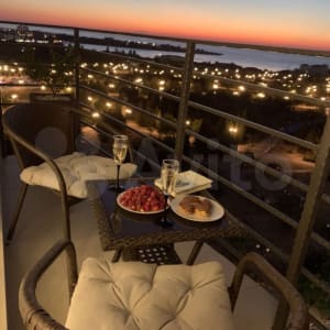 Жилая площадь составляет 32 квадратных метра + 6 метров балкон с видом на море и весь парк. Особенно здорово после заката смотрится главный фонтан с подсветкой😍