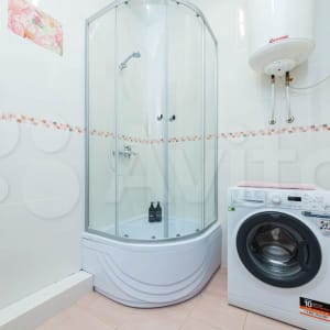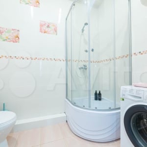 Санузел совмещенный (4 кв.м.) с душевой кабиной. В санузле установлена стиральная машина, двухконтурный котел, фен. Так же в ванной комнате вы найдете: свежие полотенца, лёгкие тапочки, шампунь, гель для душа, стиральный порошок.