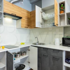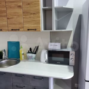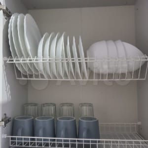 Кухня оборудована СВЧ печью, всей необходимой посудой, холодильником, электроплитой, электрочайником.