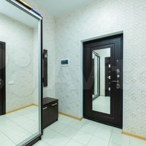В прихожей установлен шкаф купе, гладильная доска, утюг, фен.